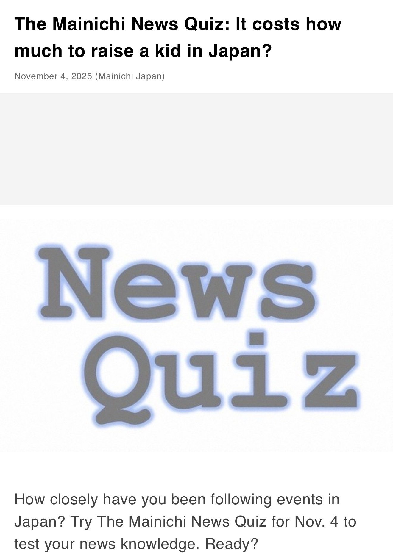The Mainichi News Quiz /ðə maɪˈniːtʃi njuːz kwɪz/ 毎日新聞ニュースクイズ